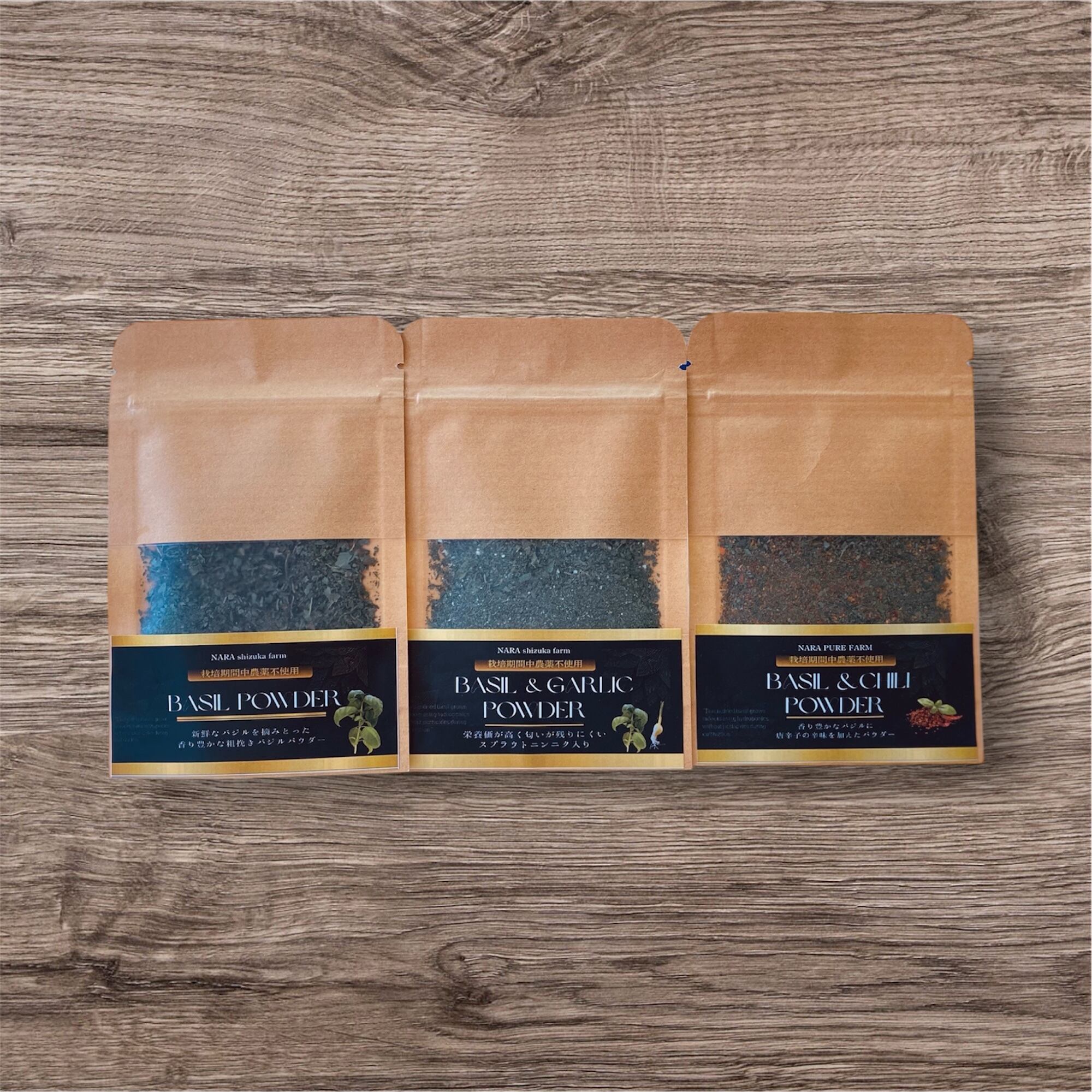 3種類のバジルパウダーをセットにしてお届けいたします。