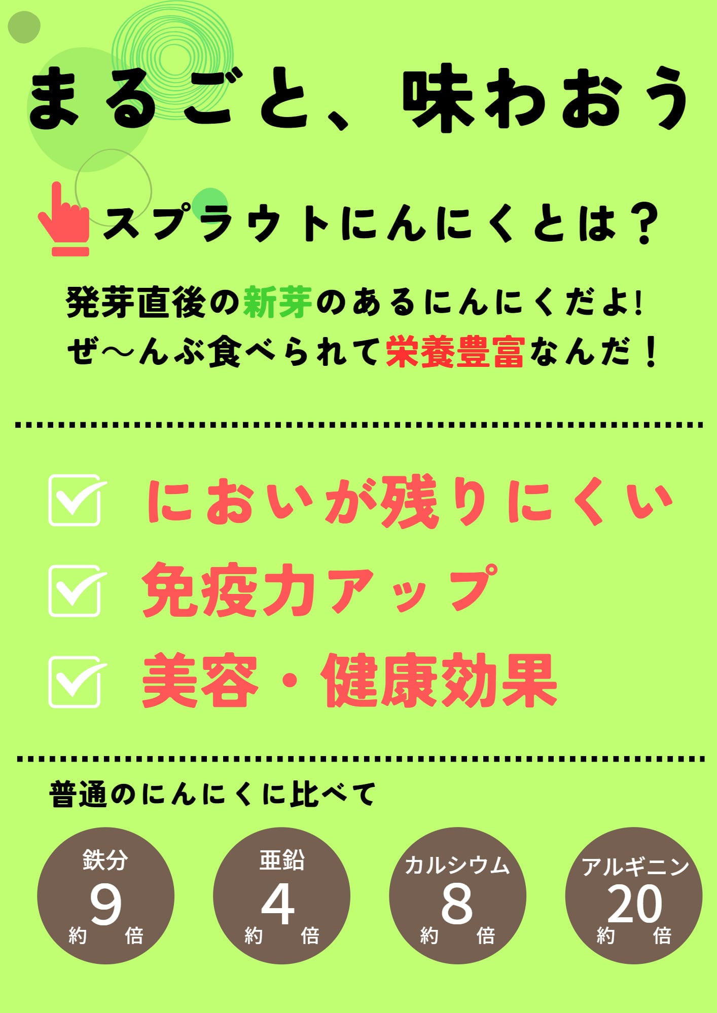 水耕栽培で完全無農薬、芽から根っこまでまるごと食べられるスプラウトにんにくです!